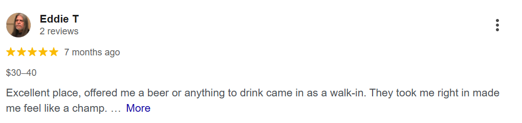 Our skilled barbers specialize in men’s haircuts, precision fades, beard trims, and classic straight razor shaves, delivering high-quality grooming services in a relaxed, rock-and-roll inspired atmosphere.